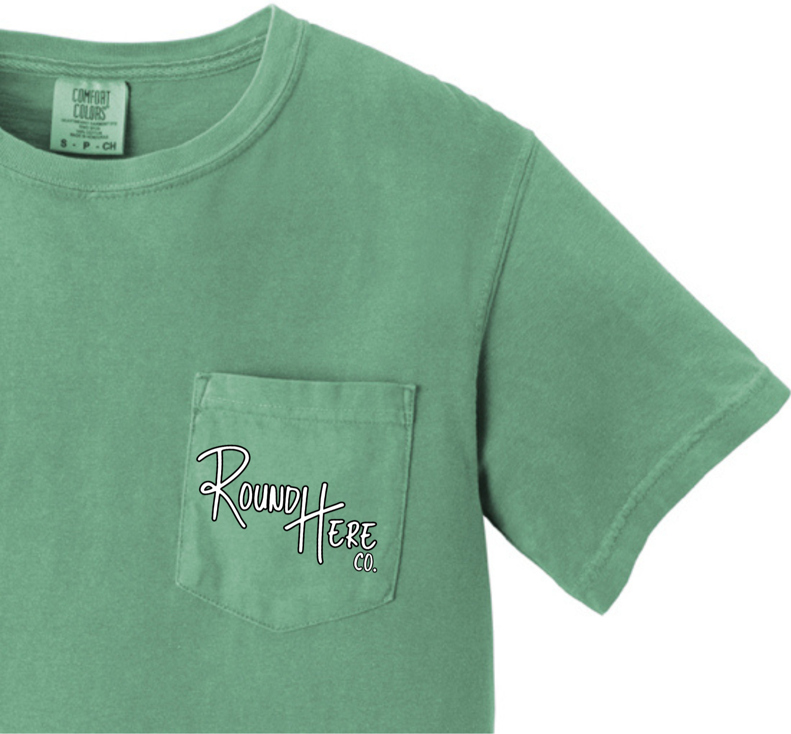 The Round Here brand Tee! Printed on Comfort colors for that oversized feel but long lasting 100% cotton material. Another print and another memory y’all can sport round here!